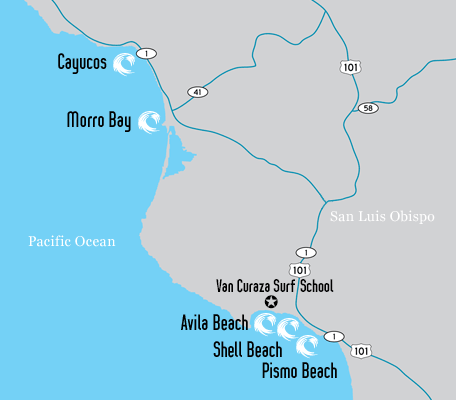 Surfing Lessons, Surf Camps, Pismo Beach, Shell Beach, Avila Beach, Morro Bay, Morro Rock, Cayucos, San Luis Obispo, Central California Coast